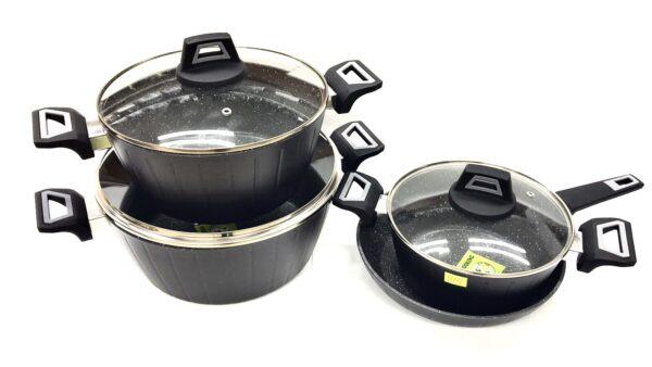 BN-344 (2)-Набір каструль 7пр 2,4 л; 4л; 6,8 л; сковорода 24см Внутрішнє -мармурове покр.;зовнішня пов